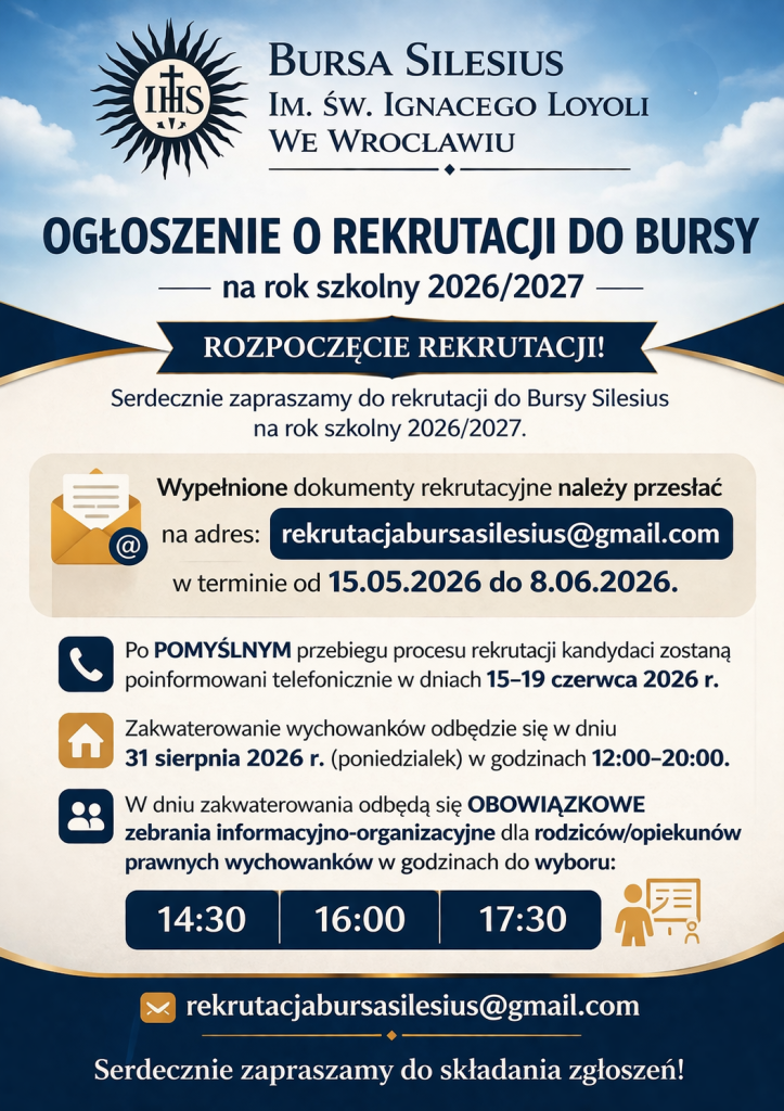 Po Mszy Świętej, w specjalnie przygotowanej sali odbyło się przywitanie nowych mieszkańców Bursy. Każdy z nich złożył kilka obietnic, które są związane z życiem w Bursie. Odbyło się Pasowanie na Wychowanka Bursy Silesius , podczas którego o. Dyrektor Bursy wręczał pamiątkowy medalion.